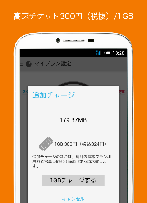 高速チケット300円(税抜)/1GB(購入日より31日間有効)を10つまで購入できます。