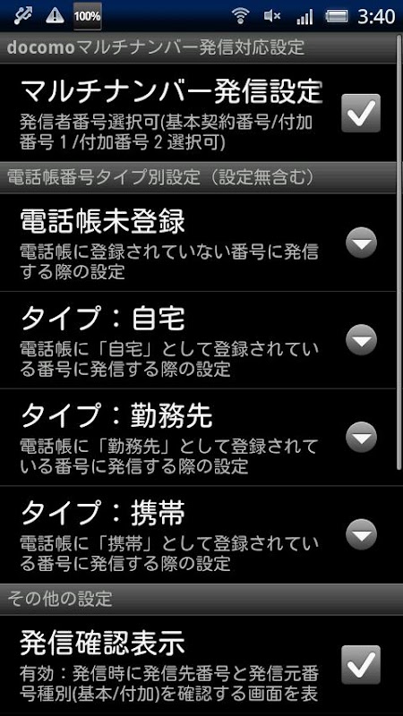 docomoのマルチナンバー契約者がAndroidのスマートフォンで音声発信時に、通知する発信者番号を基本、付加1、付加2に切り替える事を可能にするアプリです。