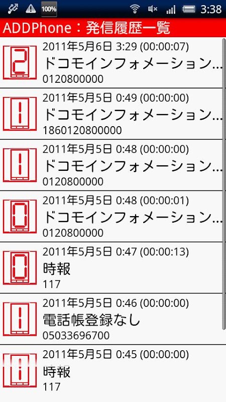 v1.07(2012/01/01): 番号通知デフォルト設定を基本/付加番号別設定可能化。発信時に184/186有無を選択可能化。2011年冬以降発売の一部機種で標準電話アプリの履歴一覧の末尾にゴミが残る事象を可能な限り改善等