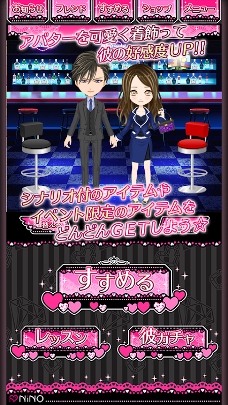 本作はシナリオとアバターの着せ替えを楽しみながら選択肢を選び、各種エンディングに辿り着く恋愛アドベンチャーアプリ(乙女ゲーム)です。