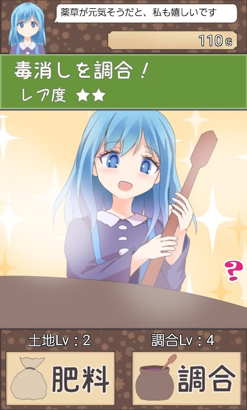 ②ボタンを押すと、ルテティアが薬草を調合します。