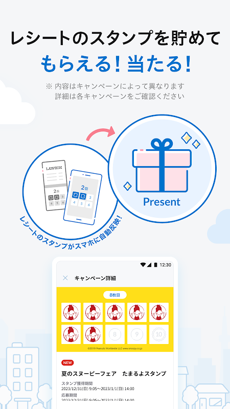 Uygun ürünleri satın alarak ve Lawson mağazalarını ziyaret ederek alacağınız pulları kullanarak ödüllere başvurabilir ve uygulamaya özel bonus puanlar alabilirsiniz.