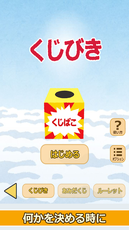 3 işlevi kullanabilirsiniz: "Piyango", "Amidakuji" ve "Rulet".