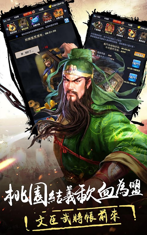 三國志武將悉數登場,多種“大老二”屬性,升級招募武將,三國遊戲,提高武將技更有將領進階一系列武將掛機升級系統為您征戰沙場加油助力,頂級武將為您出謀征戰,輕易奪取勝利!