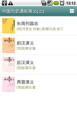 中國歷史通俗演義叢書,分上中下三冊,本冊包含東周列國志、前漢演義、後漢演義、兩晉演義。東周列國志為明馮夢龍編,其餘為民國蔡東藩著。