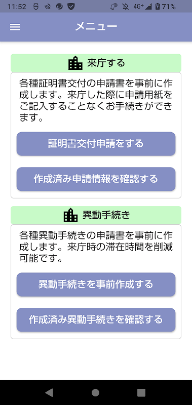 Nakano City'nin resmi uygulaması ``Nakano City Yazılı Bilgi Masası Çevrimiçi Uygulaması'', adresinizi değiştirirken veya çeşitli sertifikalar isterken başvuru ayrıntılarını önceden girmenizi sağlayan bir uygulamadır.