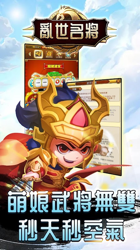 《亂世名將》是一款全新的策略回合卡牌對戰遊戲。經典畫風武將、專屬戰鬥動作、傲嬌對話獨白、演繹Q萌新境界。碎屏級怒氣必殺特效,騰空、連擊、爆發,讓你的戰鬥體驗一氣呵成!以豐富多變的戰鬥體驗、知名畫師製作的超精美卡牌、大師級的畫面表現以及極富策略性的玩法帶領玩家重回烽火連天的三國,呈現前所未有的全新三國體驗!