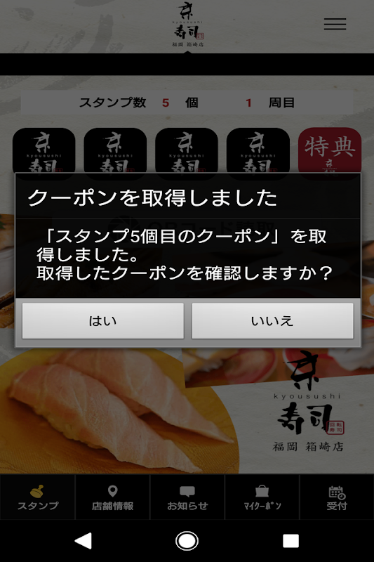 Bu uygulama "Kyosushi Hakozaki" de kullanılabilecek bir damga kart uygulaması.