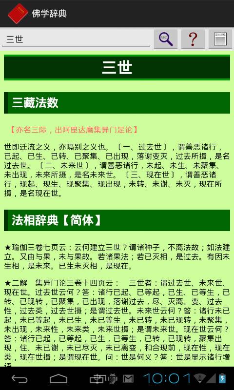 目前唯一可以脱机使用的佛学辞典。 收入了《三藏法数》、《佛学常见词汇》、《法相辞典》、《唯识名词白话新解》四部辞典,约三万个佛学词汇。