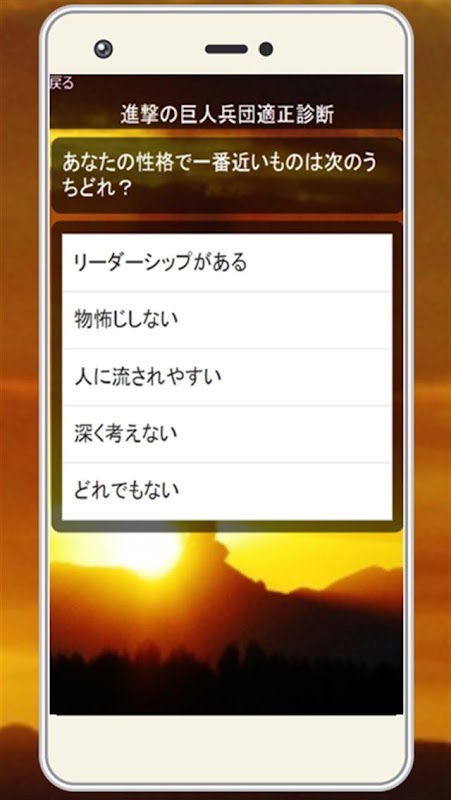 人気漫画「進撃の巨人」に関するクイズを出題!兵団適正診断ではあなたの適正と相性が良い登場人物を診断する非公式無料ゲームアプリです。