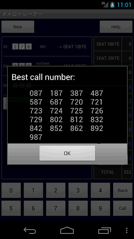 ・コールした数字が最善手かどうかを判定し、どうすれば最も効率良く正解にたどり着けるのかが確認できます。