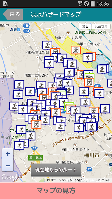 北本市の避難場所・洪水ハザードマップ・土砂災害ハザードマップ・地震液状化ハザードマップ・AED設置場所などの防災情報をいつでも簡単に入手することができます。