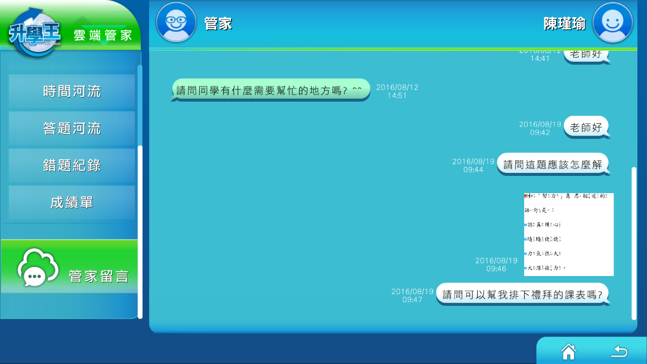 • Kahya mesajı - gerçek zamanlı uşak hizmeti sayesinde, kahya ile etkileşim çocuğu gözlemlemek.