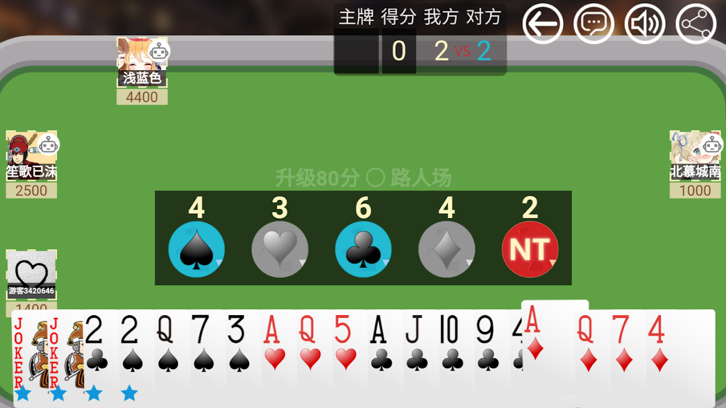 双抠80分升级 两副牌升级 - 拖拉机升级 1.0.2