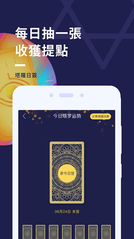 Uygulama yazılımı, aşk, kariyer, servet servet vb. gibi üst düzey tarot kartı dizileri içerir ve tek tuşla deneyimlenebilir, ayrıca kaderin kendinize olan rehberliğini daha profesyonel ve derinlemesine bilmenize yardımcı olabilir.