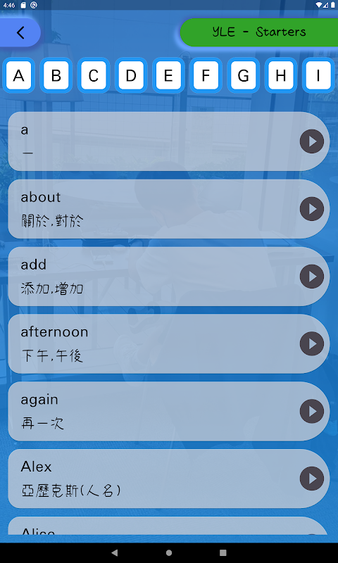 Farklı test gereksinimlerine göre kelimeler, kullanıcıların çeşitli testler için gereken İngilizce kelimeleri tekrar tekrar dinleme ve yazma yoluyla pratik yapmasına ve ezberlemesine yardımcı olmak için kategorilere ayrılır.
