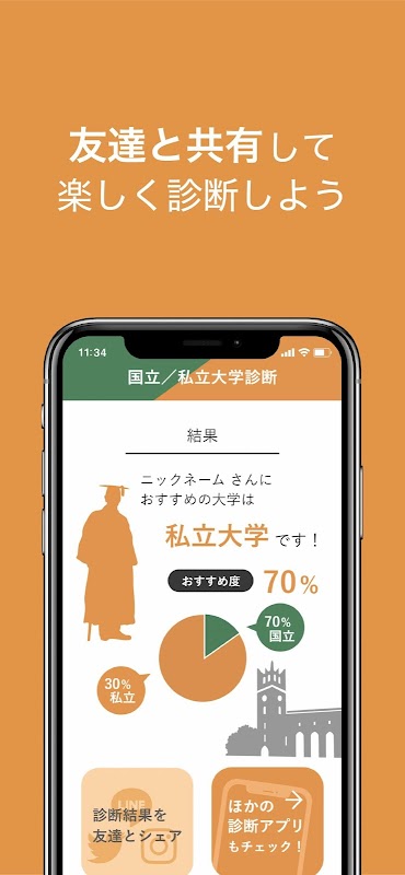 ・診断結果を、友達にSNSを用いて共有することが可能です。