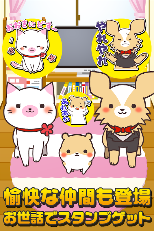 大阪弁を話す仔猫のお世話をしながら、ストーリーを進めよう!ストーリーが進むとスタンプをゲット!!