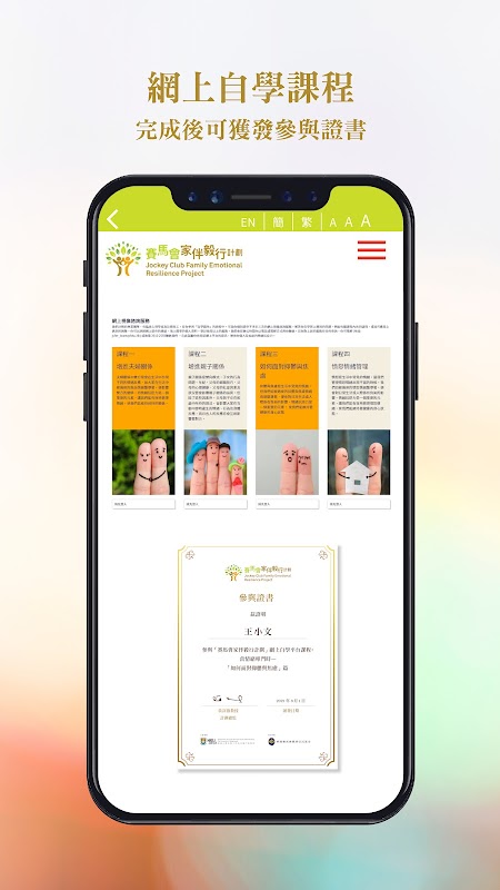 Planlanan çevrimiçi platform, halka ve ihtiyaç sahiplerine ailelerin duygusal dayanıklılığı ve bilişsel davranışçı terapi konusunda bilgi ve beceri kazandıracak. Deneyimli sosyal hizmet uzmanlarından oluşan bir ekip tarafından derlenen çevrimiçi kendi kendine çalışma kursu, zaman ve mekandan bağımsız olarak halkın kişisel duygusal sağlığı iyileştirme ve aile duygusal direncini güçlendirme becerilerini öğrenmesine olanak tanır. Web sitesinde ayrıca psikolojik testler ve analizler de bulunuyor, böylece herkes bireyin ruh sağlığını gerçek zamanlı olarak anlayabiliyor.