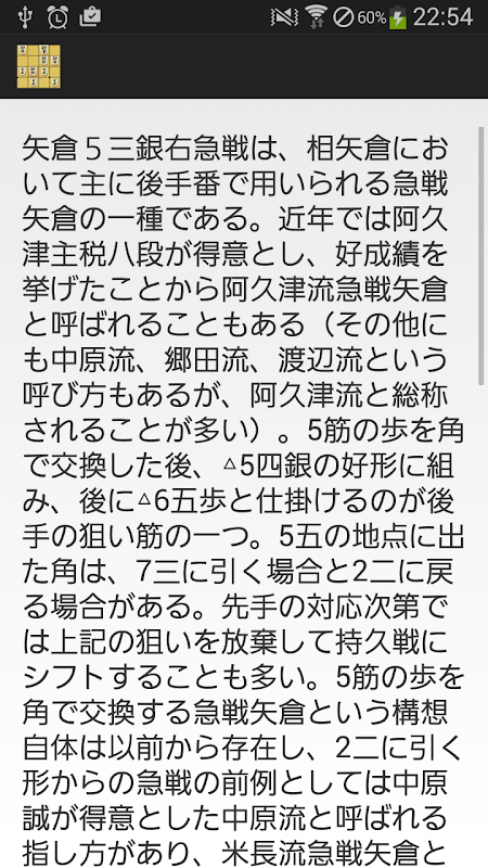 将棋の戦法のひとつ、矢倉5三銀右急戦の定跡をまとめたアプリです。