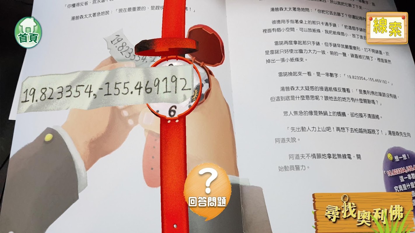 以手機或平板掃描實體故事書或是線上電子書,透過AR立體呈現,帶領操作者跟隨著偵探的腳步,一步一步的挖掘奧利佛失蹤事件背後的真相。