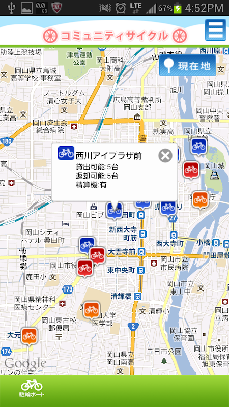 Bu akıllı uygulama Okayama City topluluk döngüsü "şeftali bisiklet" için etkili bir kullanılabilir.