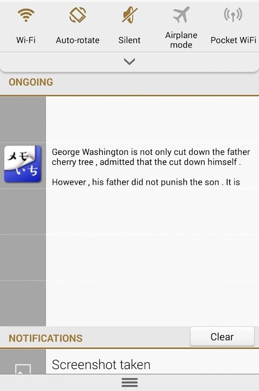 通知オンにすると、メモいちアプリが通知欄に常に表示されるようになります。