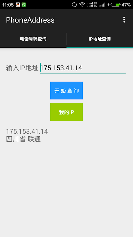 一个用户用于查询手机号码或IP所在的地区小工具。