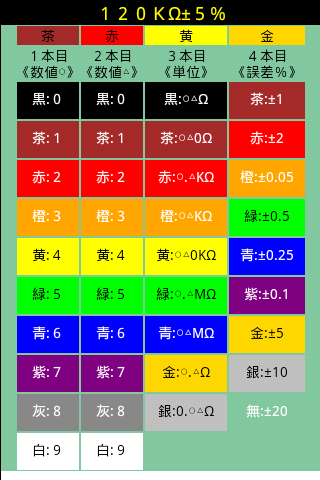 Başlattıktan sonra, direnç renk kodu ekranı görüntülenir.