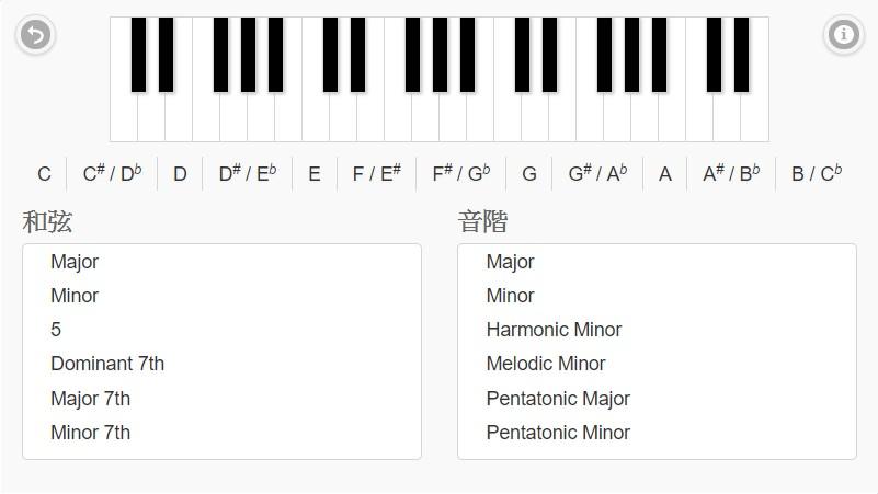 內建鋼琴和弦與音階的查詢功能。