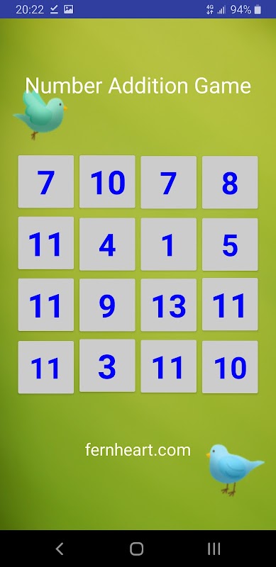 Sayıları hecelemek için toplama işlemlerini gerçekleştirmek için sayı karelerini kullanan basit bir toplama işlemi oyunu.Hem yetişkinler hem de çocuklar için uygundur.