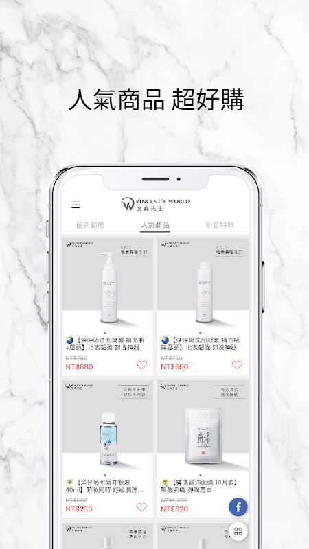 文森先生官方APP不定時推出限定優惠!APP會自動推播訊息,讓你不再錯過任何好康活動。文森先生用最高規格研發專屬於妳的美妝品,讓懶惰的妳也能擁有美麗;同時產品均經SGS檢驗合格,今天起,妳的美~VINCENT'S WORLD 來守護。量身推薦您最佳美妝品,就在文森先生 APP!