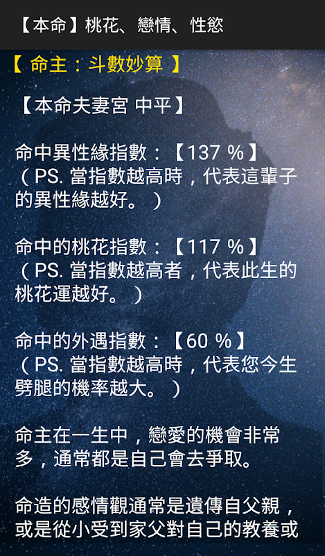 7. 建議先查看 (個性、喜好) 選單,確認該命主的性格是否符合當事人的實際狀況。