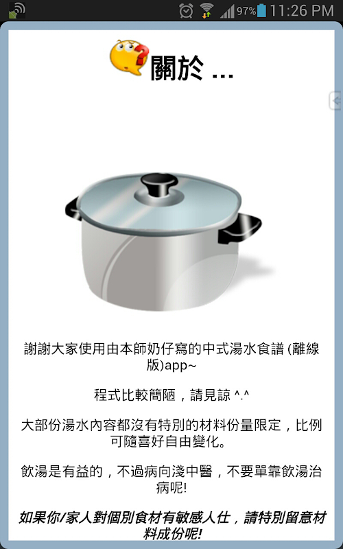 謝謝大家使用由本師奶仔寫的中式湯水食譜 (離線版)app~