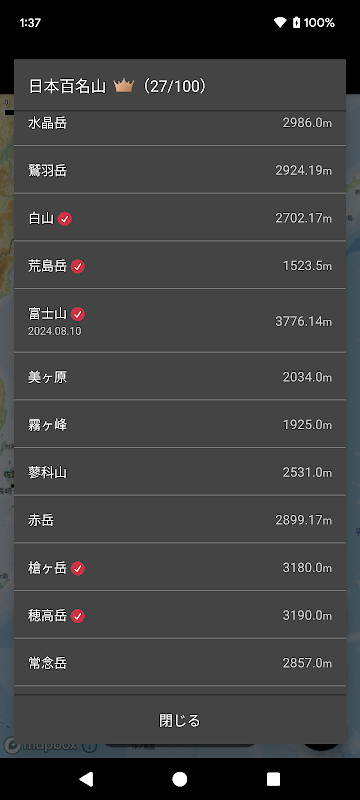 Bu uygulama, Japonya'daki dağ tırmanışlarınızı takip eder. Tırmanılan ve tırmanılmayan dağları ayırt etmenizi sağlar. Japonya'nın 100 Ünlü Dağı, 100 Ünlü Bölgesel Dağ ve her prefektörlükteki dağlar (prefektörlük dağcılık rehberi) dahil olmak üzere kapsamlı dağ verileri içerir. Her dağın zirve tarihini kaydedebilir ve o gün çekilmiş fotoğrafların listesini görüntüleyebilirsiniz. Ayrıca haritayı 3B olarak görüntüleyebilir ve zirveleri belirleyebilirsiniz.