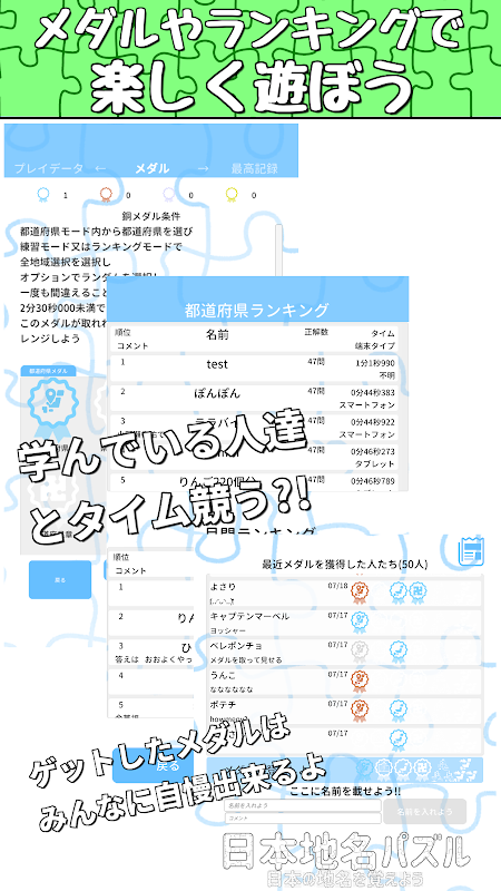 日本地名パズル-都道府県-県庁所在地-市区町村が遊べる日本地