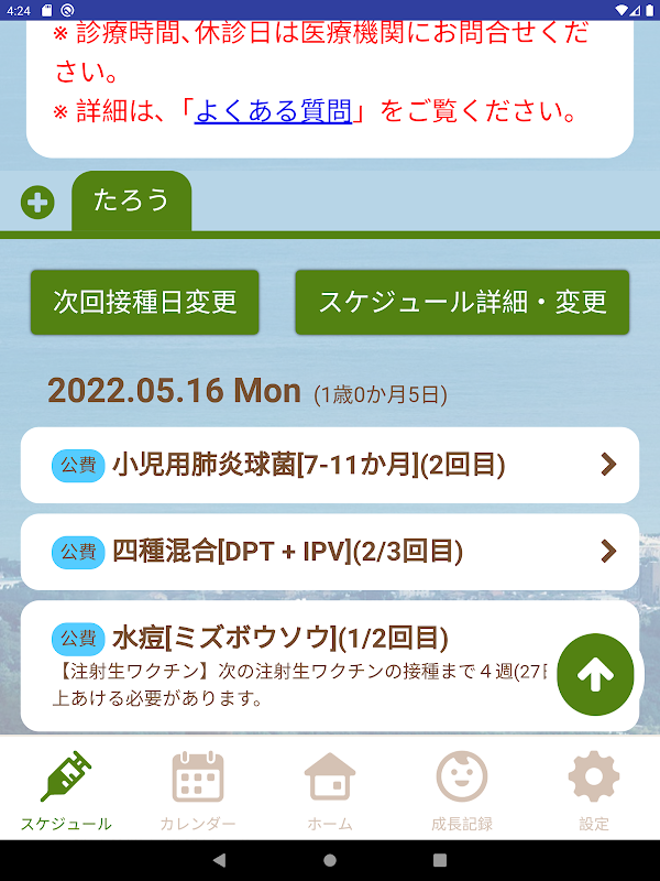 Hitachi City Gebelik ve Çocuk Yetiştirme Destek Uygulaması "Aşılama Kolay Planlayıcı", "Hitachi Anne ve Çocuk El Kitabı Uygulaması" olacak şekilde yenilendi. Otomatik olarak bir aşı takvimi oluşturur ve aşı tarihi yaklaştığında anında bildirim ile sizi bilgilendirir, ayrıca büyüme grafiklerini, fotoğrafları ve tıbbi muayene sonuçlarını kaydetme işlevi de vardır. Sağlık yönetimi, istediğiniz zaman, istediğiniz yerde kolayca kullanabileceğiniz bir uygulamadır, bu yüzden lütfen bundan yararlanın.