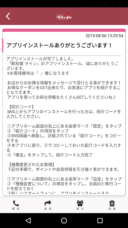 欧和食ラインのアプリをSNSを通じてお友達に紹介する事ができます。
