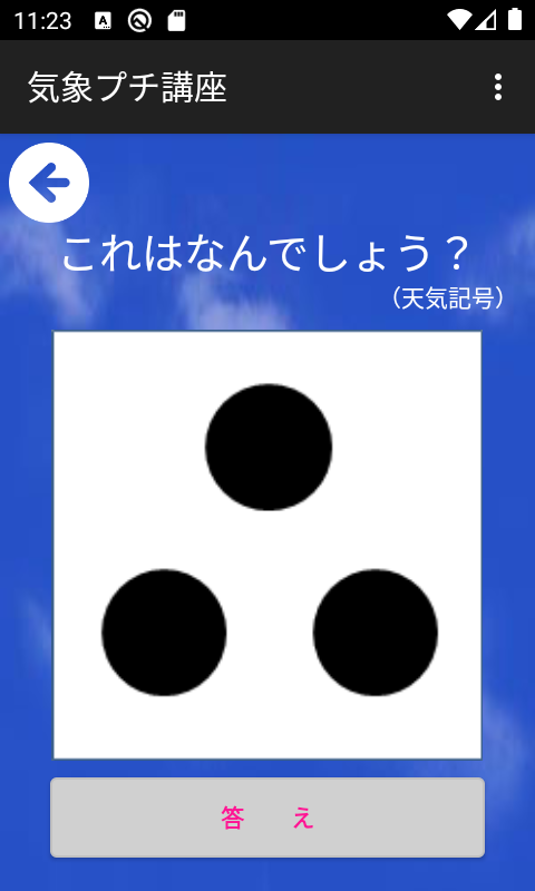 気象予報士なら誰でも知っていて当然な天気記号。でも100個もあるとなかなか覚えられません。しかも天気図には天気記号だけではなく雲量記号や雲形記号、気圧変化記号...。様々な記号を1つのアプリに収めていつでもどこでも閲覧できるようにしました。さらに効率よく覚えるならどうしたら...と考えに考えた末にクイズ機能を持たせてみました。