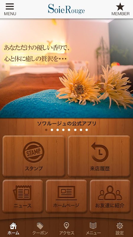 このアプリでは、ソワルージュの色々な情報やアプリユーザー限定のお得なサービスが手に入ります!
