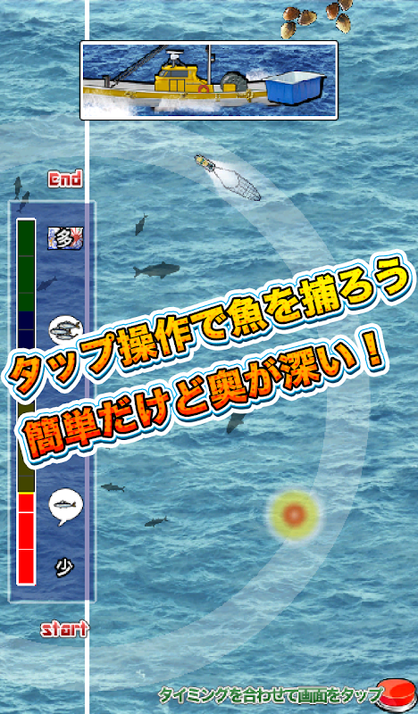 強い魚になると、船にタックルをしてきたり、漁の時間を早めたりと、攻撃してきます。どの魚がどんな攻撃をしてくるかなどを予想し、装備を整え、戦略を立てることもキング・タッチ―攻略の近道となります。