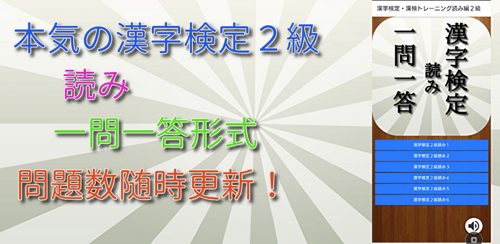 このアプリでは漢字検定6級~1級に出題される「読み問題」をメインに置いた問題集アプリです。