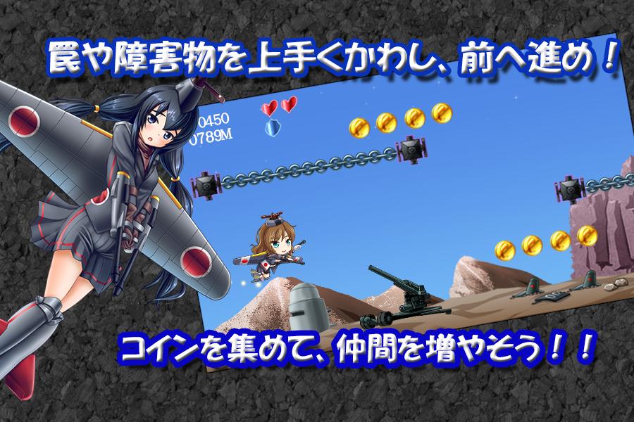 ・画面タップで戦闘機むすめが上昇し、指を離すと下降します。