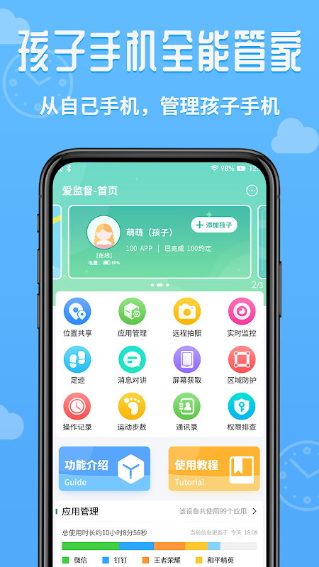 【应用管理】合理分配应用使用时长,帮助孩子脱离手机网瘾;