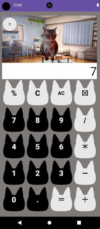 Bu uygulama bir kedi meme temalı hesap makinesidir.