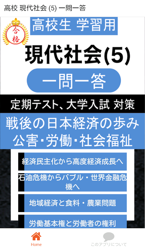 現代社会を学ぶ高校生が、定期テストや大学入試に向けて、ポイントを押さえてなるべく楽に勉強することを目的として作成したアプリです。