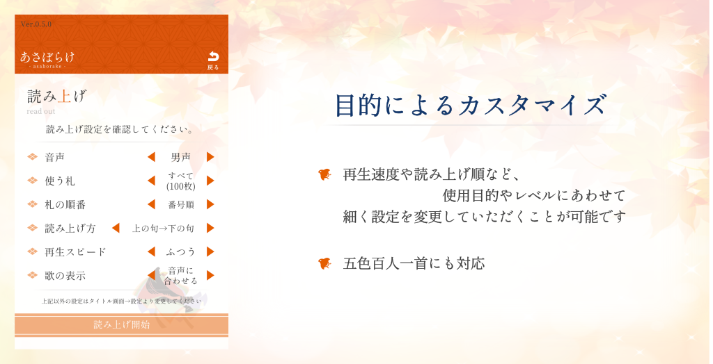 百人一首 肉声読み上げアプリ 「あさぼらけ」 1.6.3