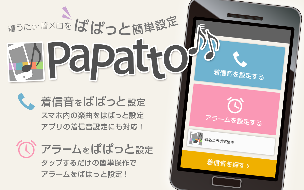 PaPatto, Chaku-Uta (R) ve Chaku-Mero için zil seslerini hızlı bir şekilde ayarlamanıza izin veren ücretsiz bir uygulama
