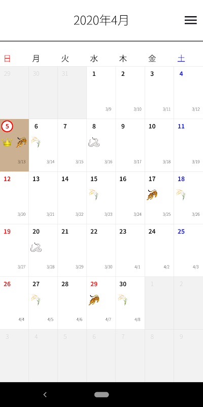 福暦 - 旧暦 - 月齢 - カレンダー Sample 1.3