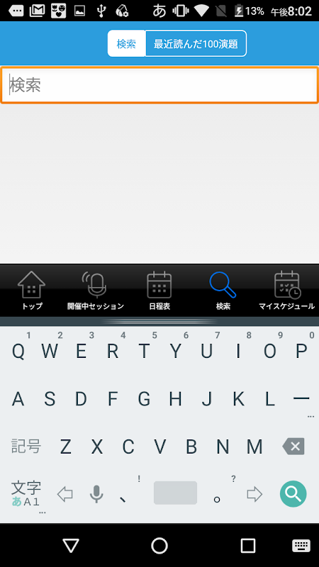 会期中、その時刻に発表されているセッションが一覧表示します。